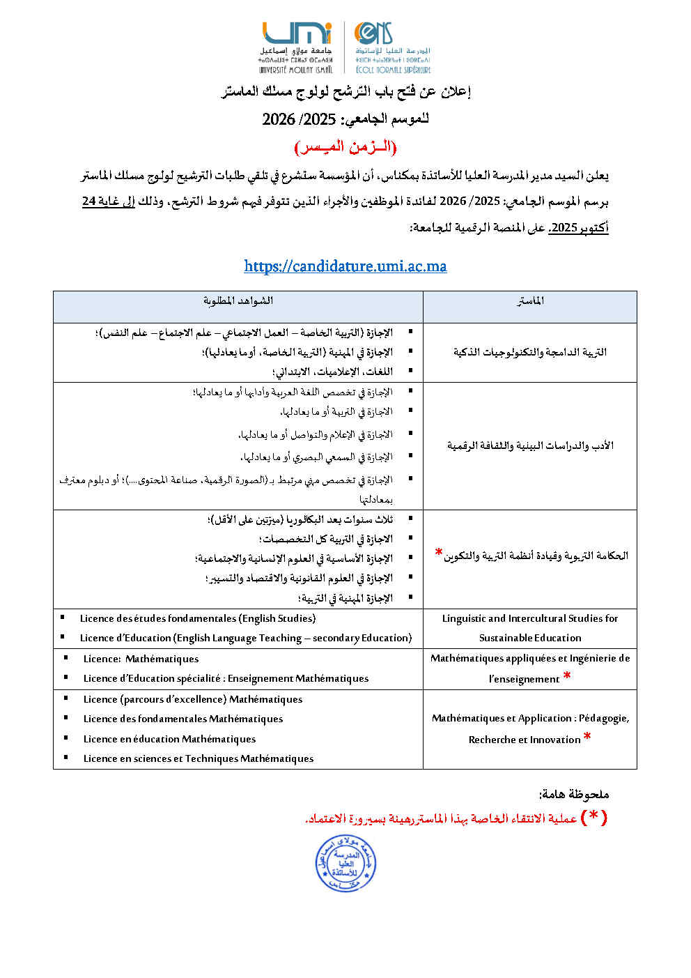 Copyright © 2025 Tous droits réservés | École Normale Supérieure de Meknès