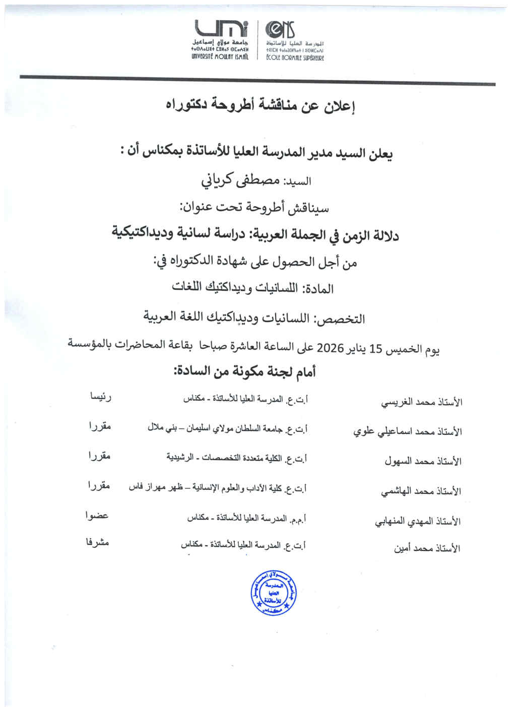 J’éprouve un immense plaisir de souhaiter la bienvenue aux élèves, nouveaux étudiants, qui rejoignent l’École Normale Supérieure de Meknès pour la première fois. Je leur souhaite, ainsi qu’aux autres étudiants, beaucoup de succès et la réalisation de leurs aspirations. J’adresse également mes meilleurs vœux cordiaux à tous mes chers collègues des corps professoral et administratif...